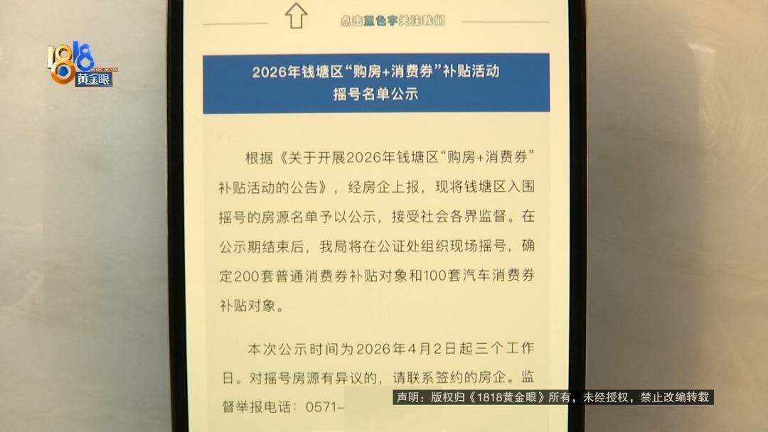 杭州建潮房地产开发有限公司 唐经理:我们在案场都有公示,我们做出画面,具体的活动细则每个上都写得非常清楚。而且每一户成交的业主都是会签署政府提供的知晓参与具结书这样一个文件的。
